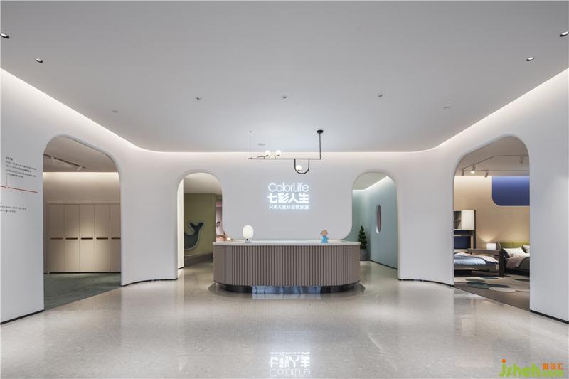 本案服务品牌为七彩人生,二十多年专注于儿童、青少年家具研究生产。此次设计需要对多个系列的产品同时展示,既要有品牌的整体感,又要有不同系列的特性美。对于展示空间来说,只有人对空间有了好感,才能增多了解产品的机会。