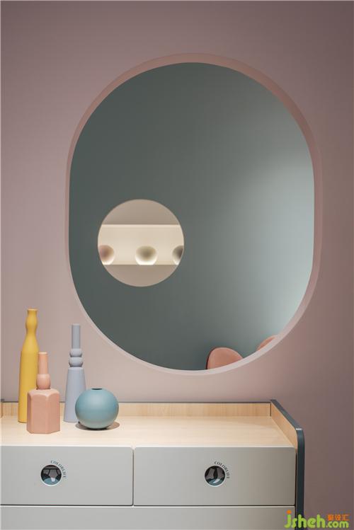 以空间即雕塑的理念在展厅中间加一低墙,结合产品做了跳色,挖了些窗口、门洞等造型,行人需从中穿过,空间似隔非隔,又让孩子们体验到捉迷藏的游乐感。