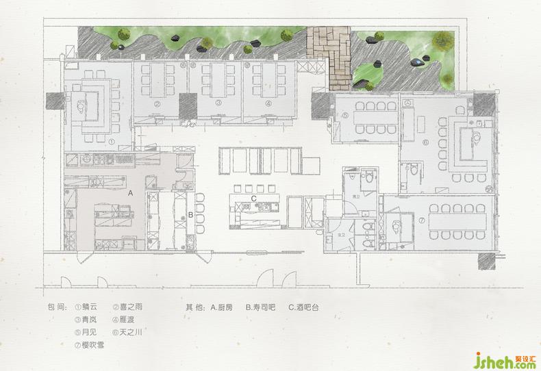 日料餐厅设计心灵重新回归到自然当中,与自然交谈,享受它带来的抚慰与安宁。