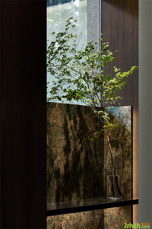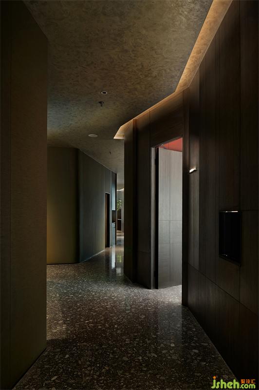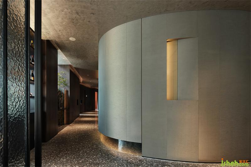 走廊呼应着循环的流动的水,一脉曲线环绕着包间于尽头交汇,餐厅设计蜿蜒曲折,循环不止。一眼难以看穿,只有人们行走于其中,山穷水尽疑无路之时,方才得见又一房间入口。