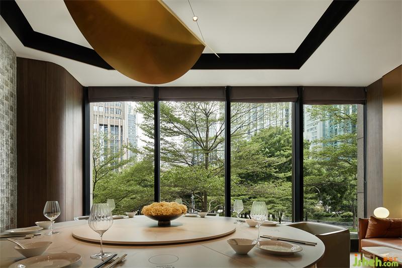 推门而入,霎时豁然开朗,一整面清丽的窗景令人眼前一亮。茂盛的树冠近在眼前,仿佛伸手便可与之相握。悬于树梢上享用美食,想来也是奇妙的体验。