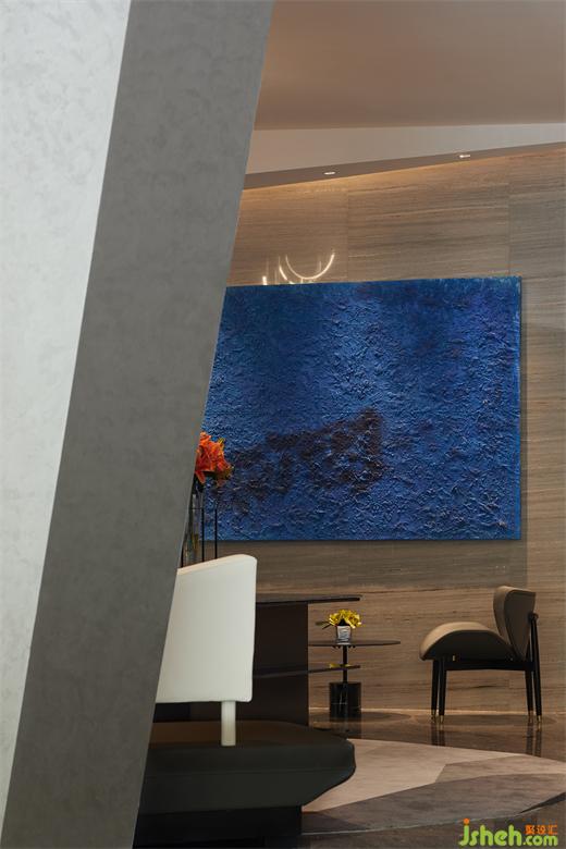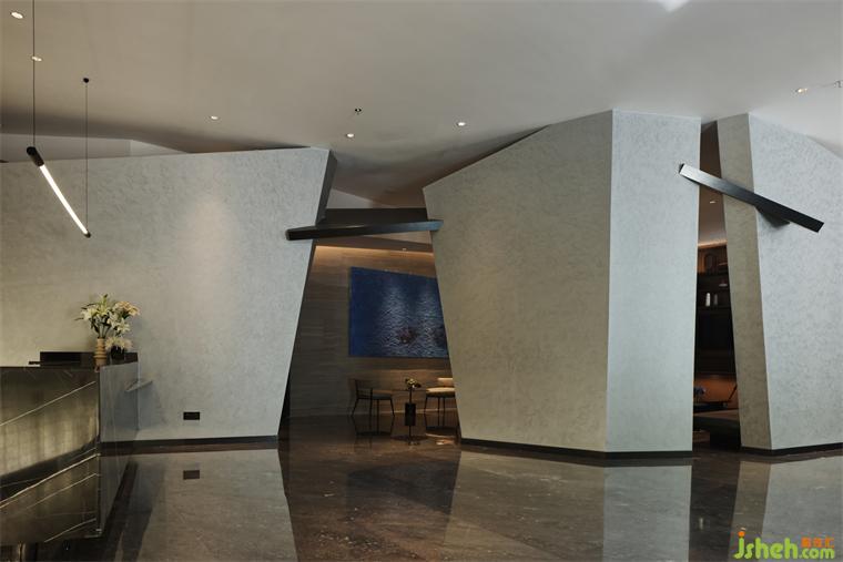休息区的座椅围着花台摆放,保持了一定的空间距离,三亚小酒店设计用书架营造出书房会客厅的氛围,和散落在各处的艺术品呈现出一种艺术气息。