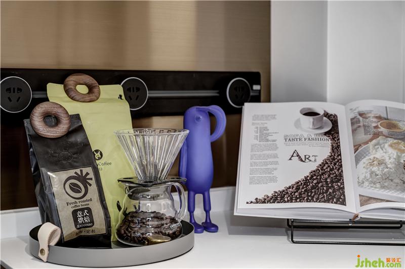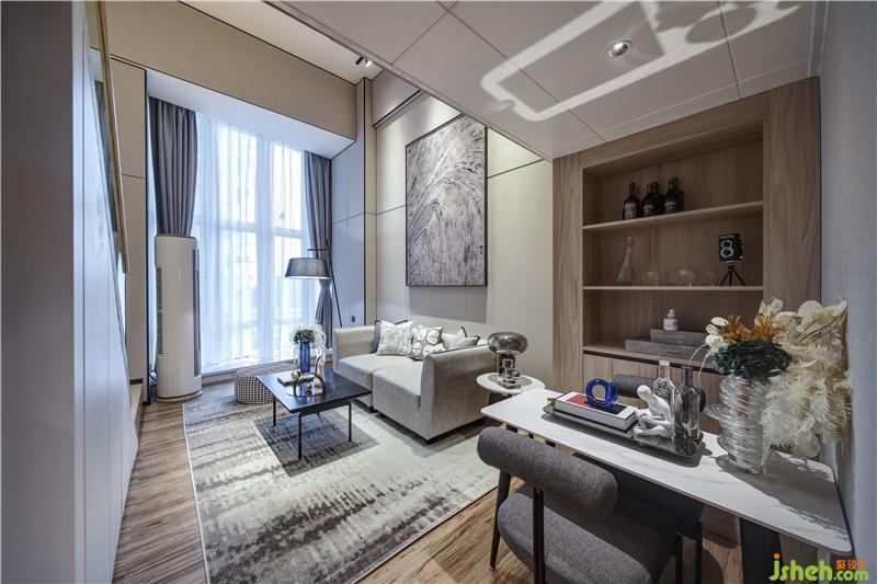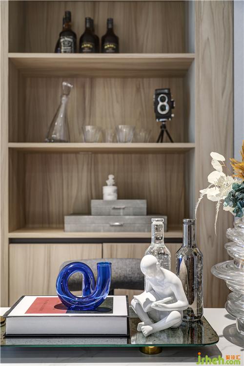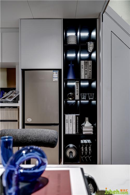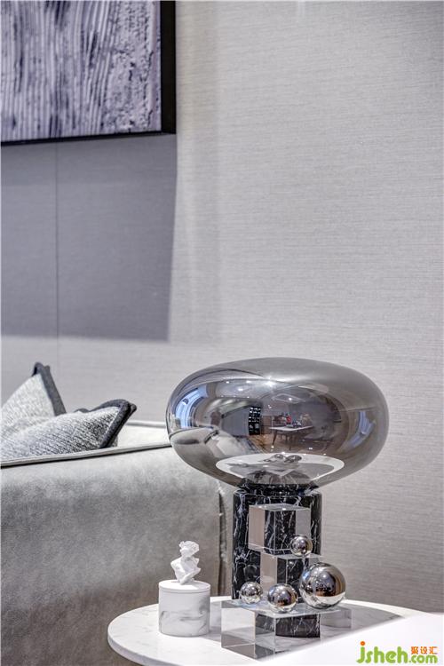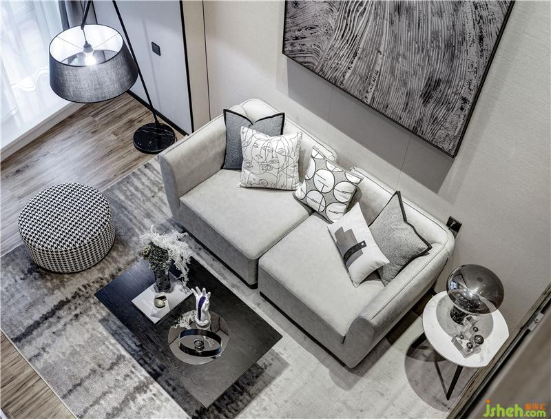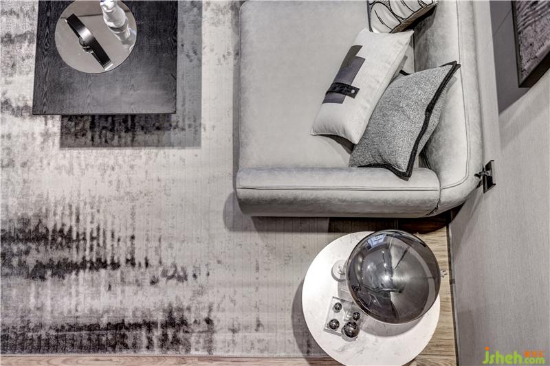 以深灰、浅灰、蓝、白的家饰交相叠印