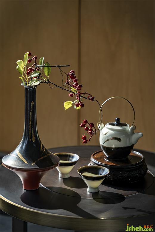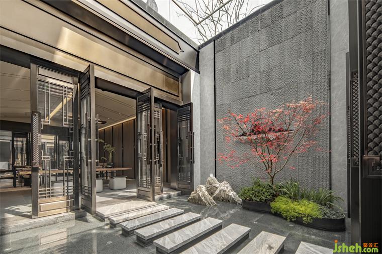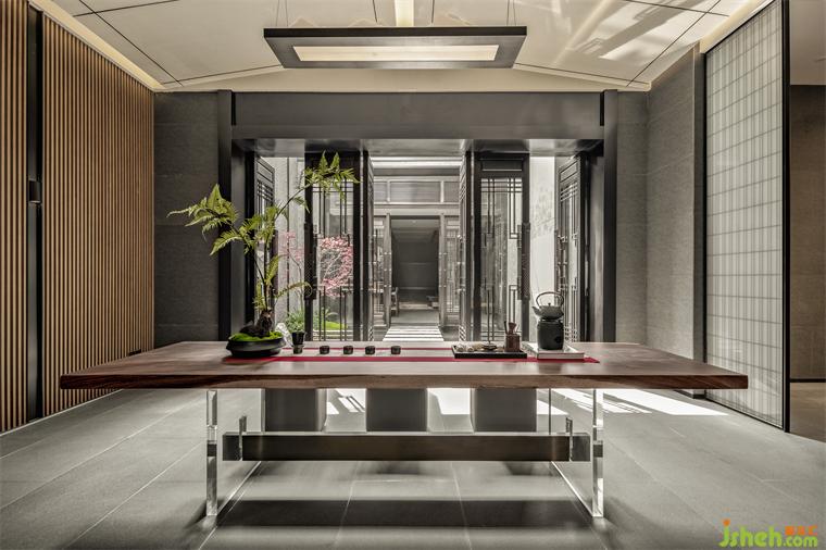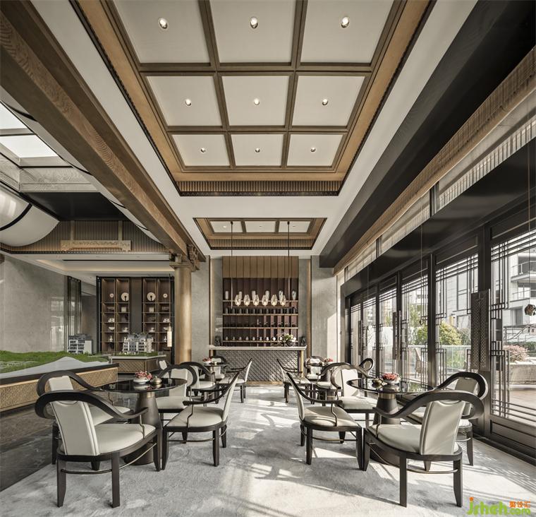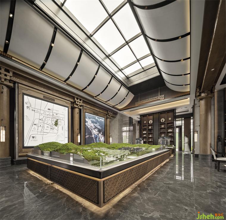 营销中心设计整体色系运用黄金比例分割,意在将空间各处体现出高级优雅、舒适、惬意的空间氛围,材质上采用木材,金属与石材的品质结合,布艺上采用棉麻的清雅质感和高精密缎面的肌理感,融入山水人文情怀,打造出一个具有当地文化特色的销售中心。