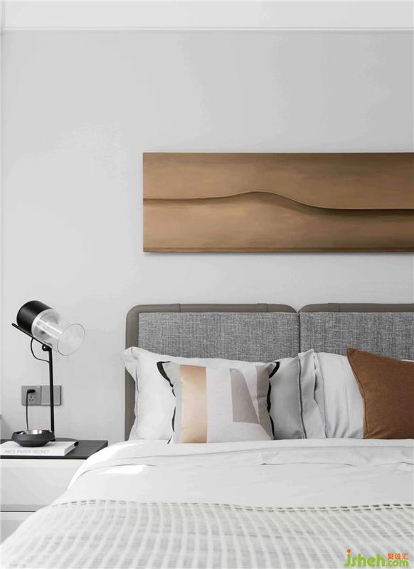 长辈房的设计强调了以纯粹的材质体现品味,大面积的木色为整个空间带来温润的视觉体验。细腻亲肤的床品渐层相叠,更为睡眠区营造出宁静与温暖。