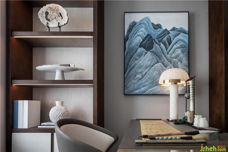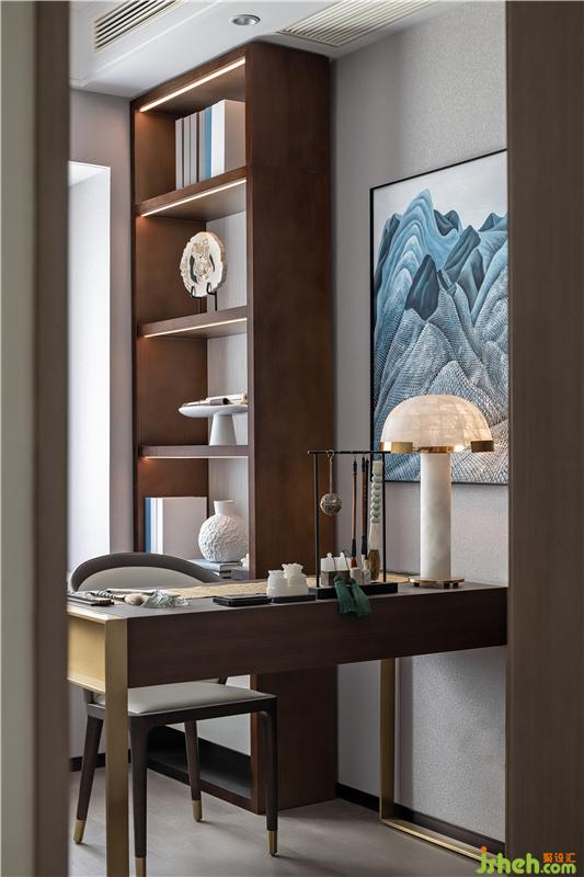 以写意笔触,回应独属于东方清韵的人文臻境,无需浓墨重彩,只余素雅之姿,丰富书房层次感,诠释东方文化的精粹,并将略显沉重的传统元素,以更加优雅轻盈之态呈现于空间之中