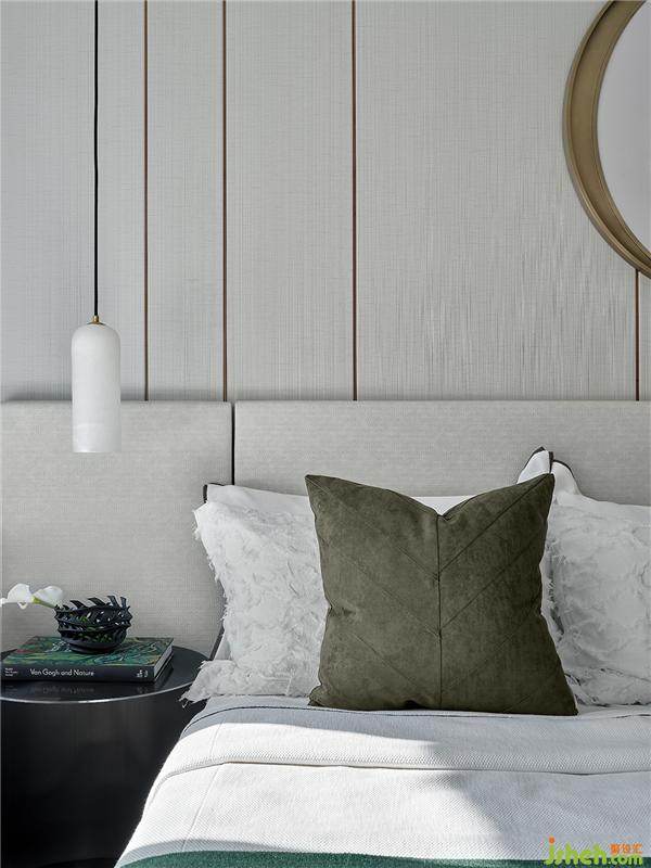 由大理石肌理和金属质感边框制作而成的床头装饰品,使整个空间透露出一种古典自然又富有生机的舒适美。室内的一切陈设删繁就简,用一抹嫩绿点亮空间,便足矣唤醒活力满满的一天。