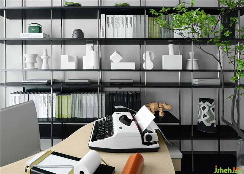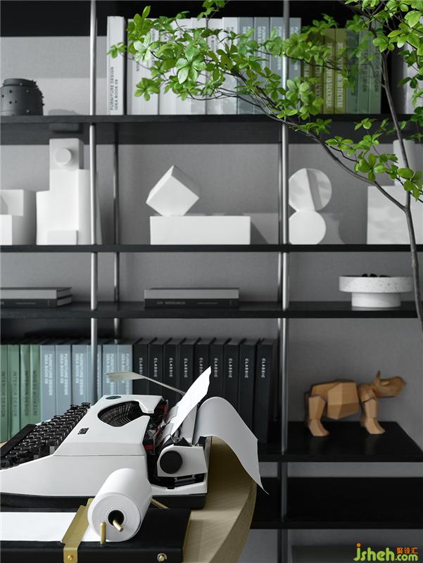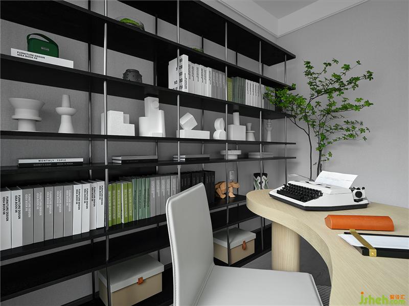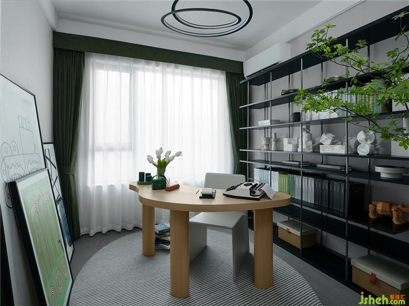 简单的绿植盆栽为书房增添了自然和生命的意味,为枯燥的伏案学习和工作增加了点滴生活趣味。