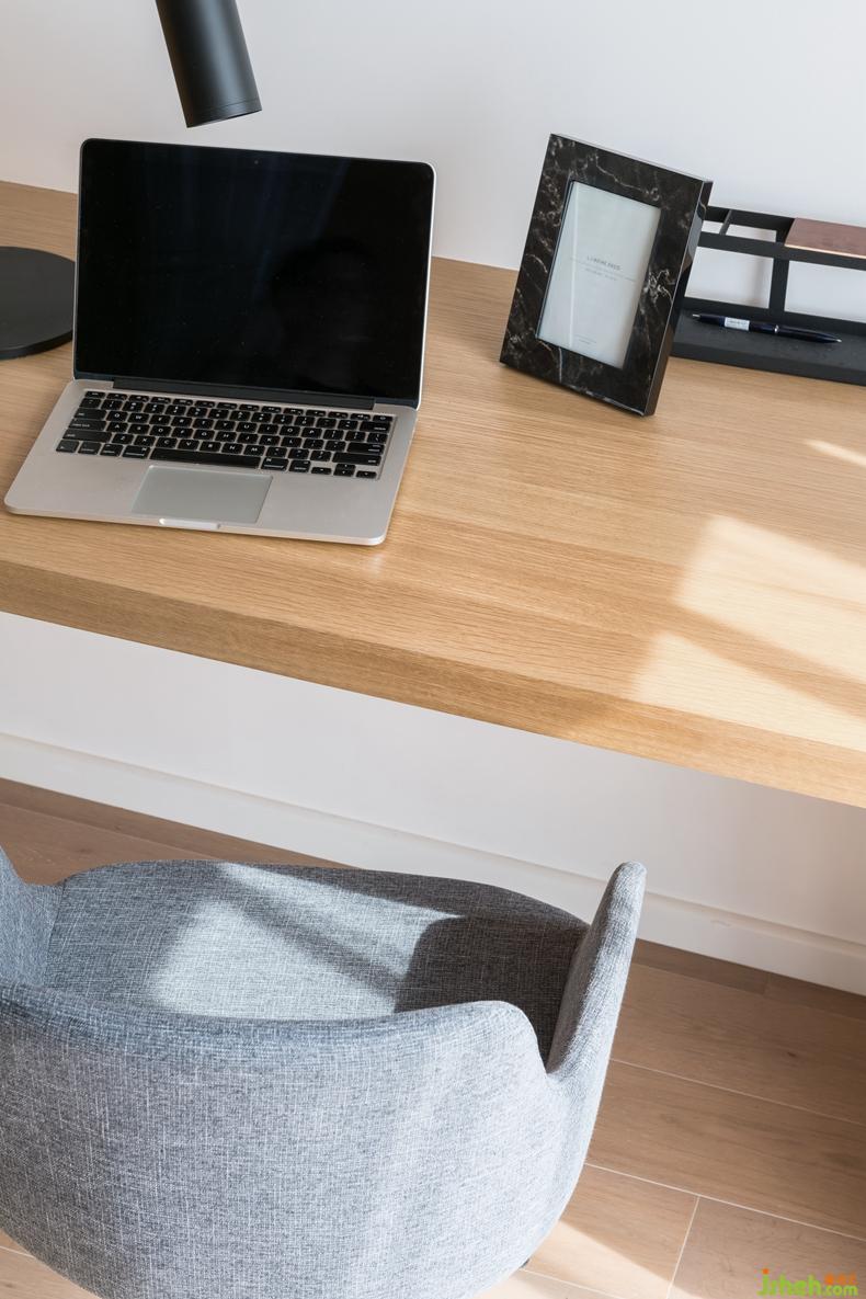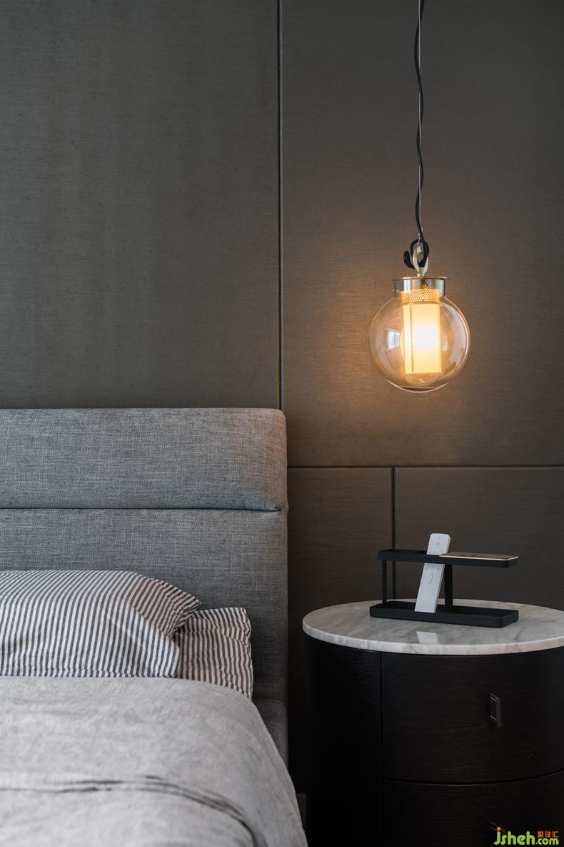 在生活习惯上,靠近门边通行频繁区域的床头柜采用了圆柱体的形状避免磕碰。在视觉效果上,利用大理石台面来提高整个空间的明亮度。