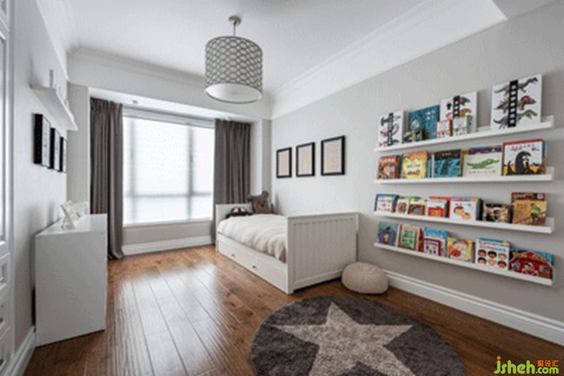 干净利落的书架整齐地摆满书籍,在满足孩子阅读兴趣的同时激发他的秩序感,让他自然形成收拾整齐房间的习惯。