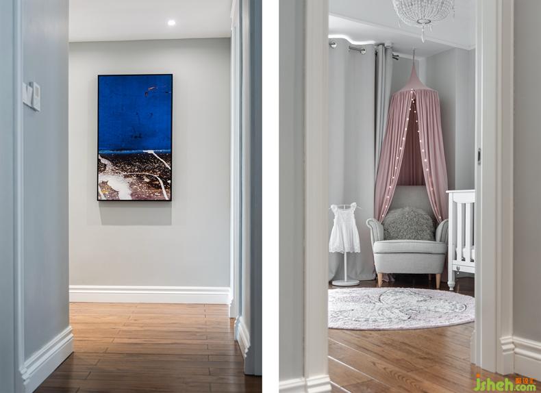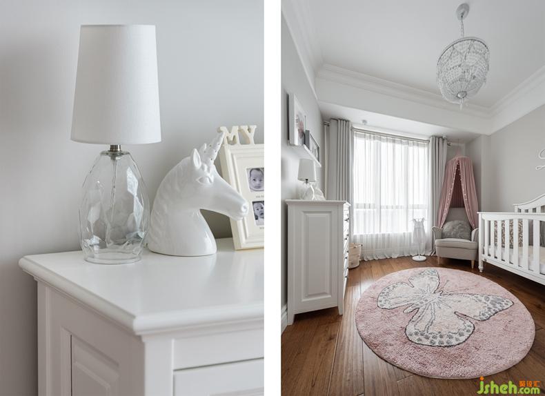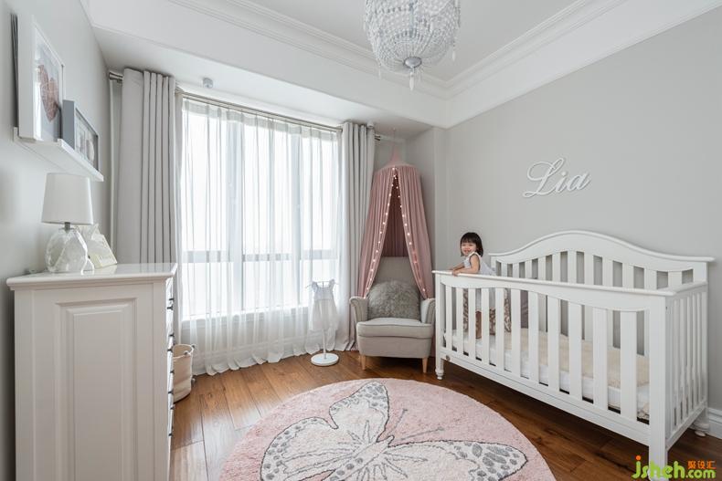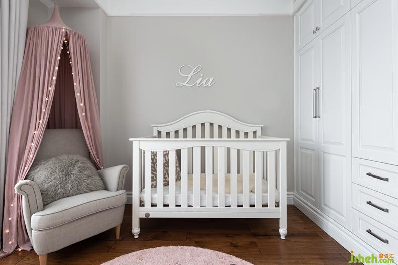 墙面有着Lia花体英文,这是小公主的小名,小格调的设计让她从小能够意识到这个空间便是她独立的领域。