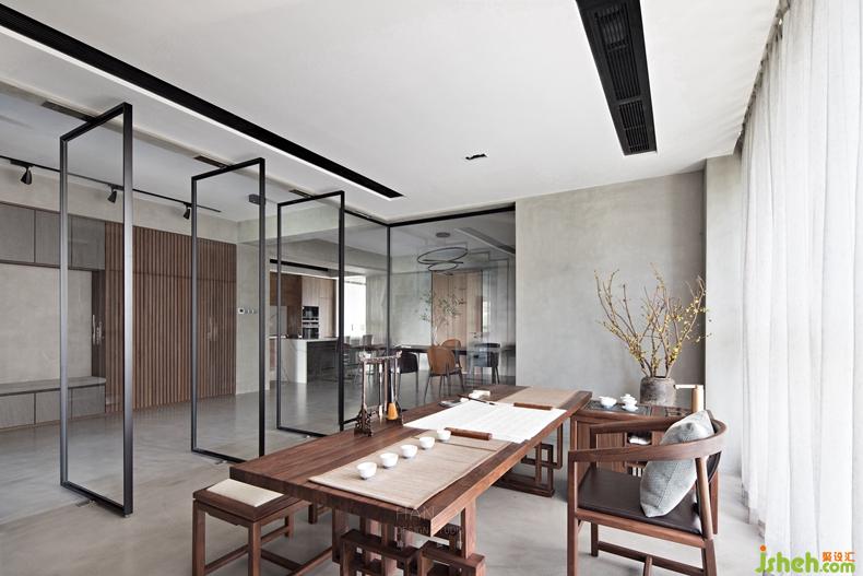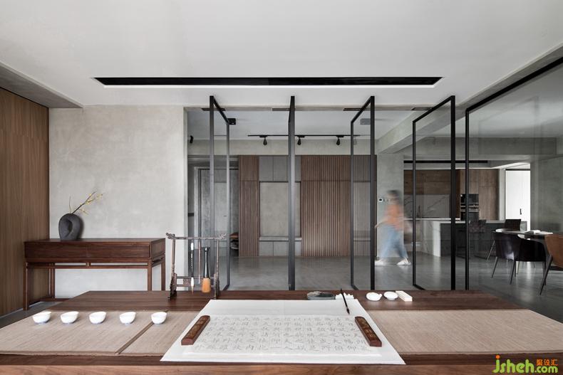 玻璃门及隔断将空间感延伸,从视觉上开放整个空间。闭门,褪去嘈杂,茗茶提笔,洗净身心。空间也可以像人一样,有其独立的修养,静/净/镜 :安静的空间/文化修养净人心脾/让人从内在直视自己。