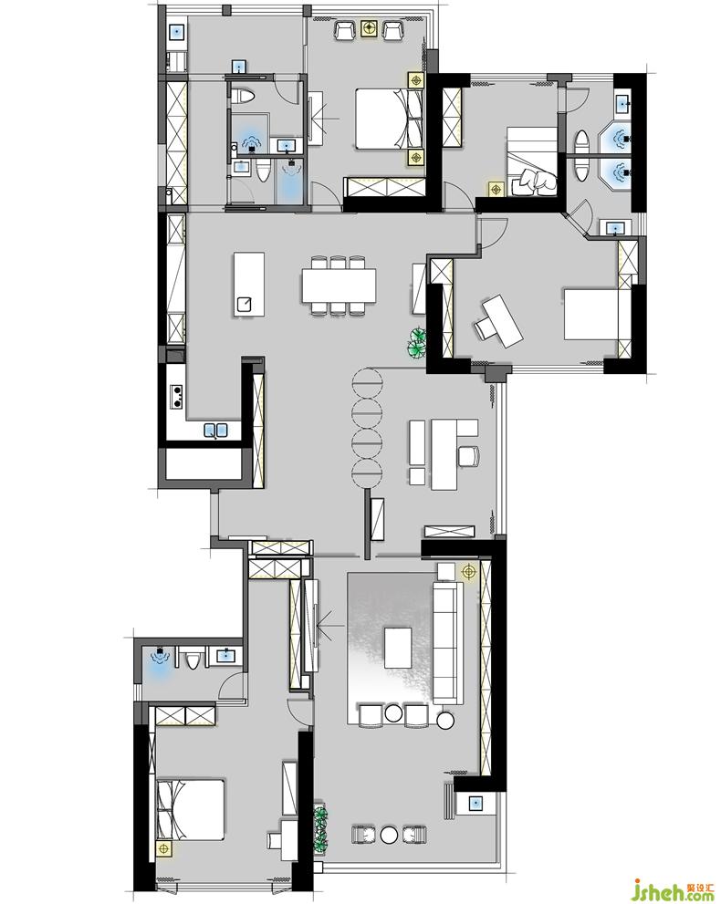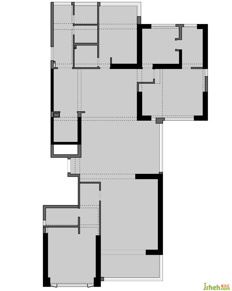 整个原始户型规矩且空间宽阔,这为设计师在户型上的设计提供了更多的灵活性,但是太宽阔的空间会让家的区域界限变得模糊。