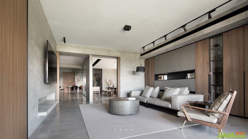 这是一套300平的大平层,一家五口居住,Y小姐的意向图以清水泥为主,因此我们在大面积的空间内使用具有水泥质感的Pandomo。这种材质是更高阶的水泥自流平,用在地面或者墙上会有更加柔和细腻的质感,也能避免地板或者瓷砖的缝隙,呈现出独特的纹理让家的质感提升不少。