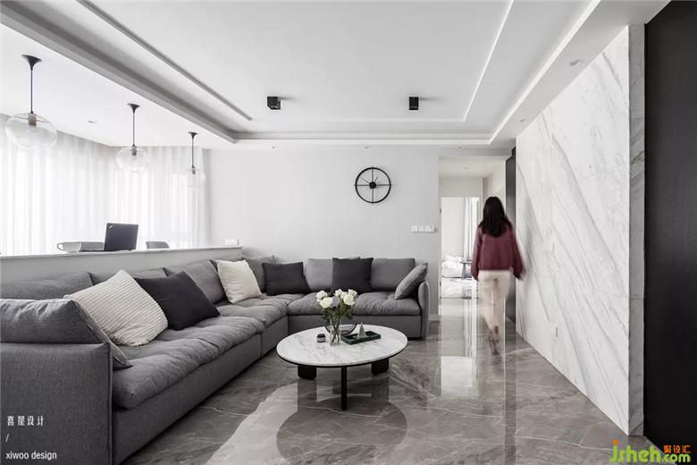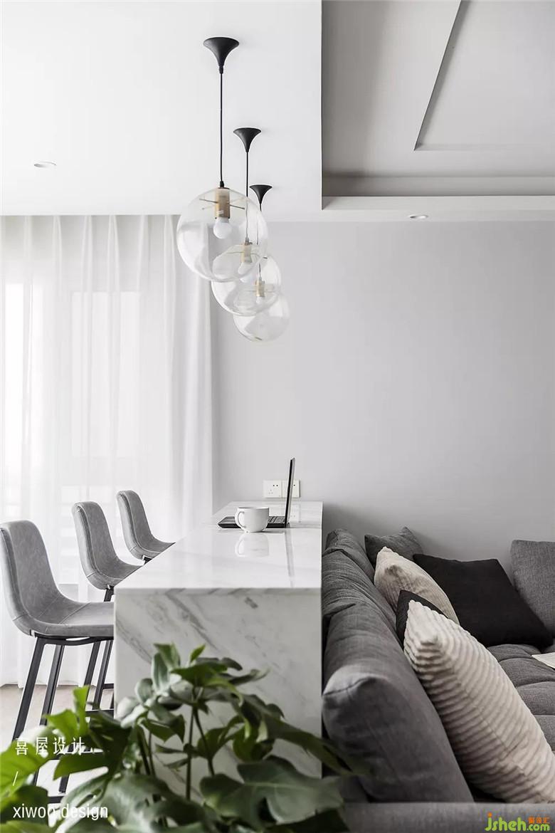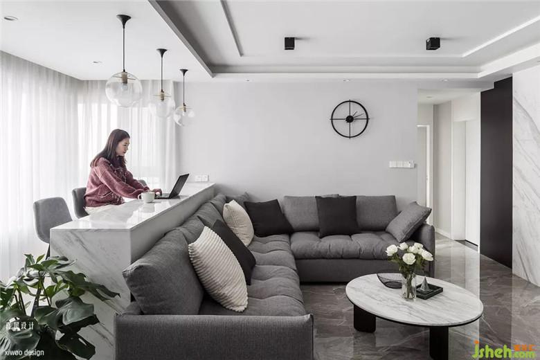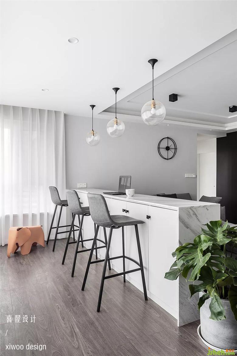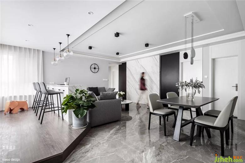 吧台和客厅用吊顶和地台的高低差界定一如弦歌起伏有致