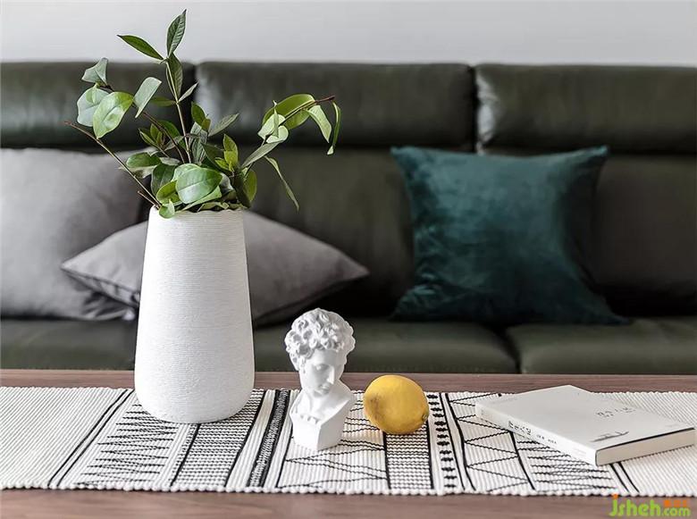 橡木的人字拼地板加墨绿的沙发,更突显出了整个空间的复古质感
