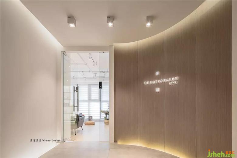 鱼骨拼的地板、拱形门洞造型、大理石前台、科定饰面板、白色墙面再加以灯光,舒适在这里汇集。