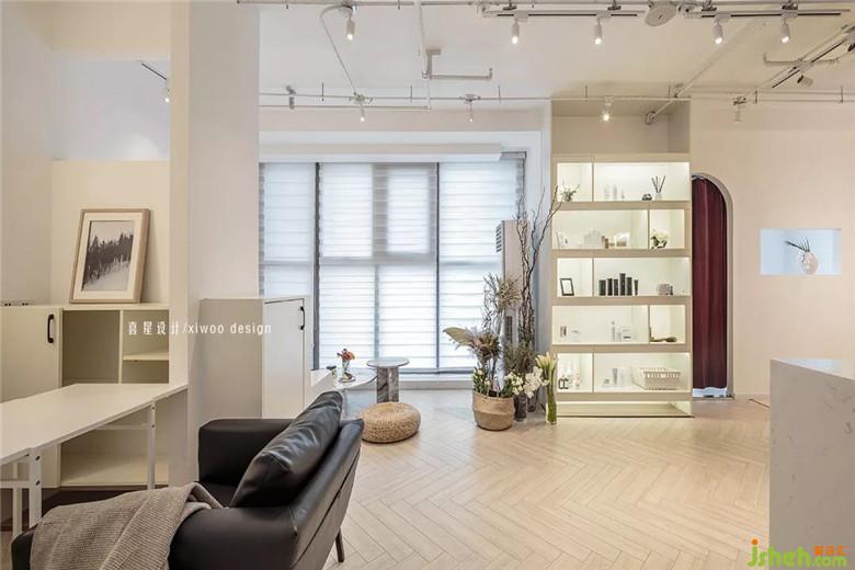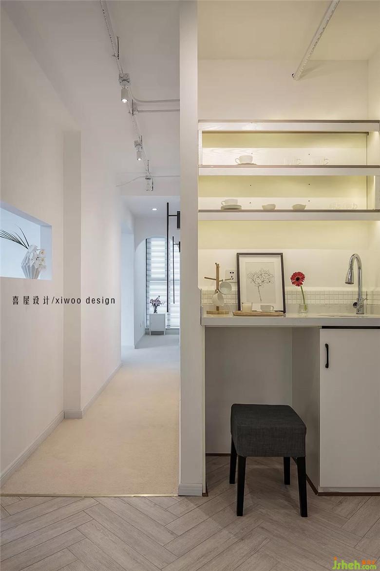 吧台区是专门为顾客提供茶水饮品的地方。预留了小冰箱的位置,等待这夏天来临,为顾客献上清爽。