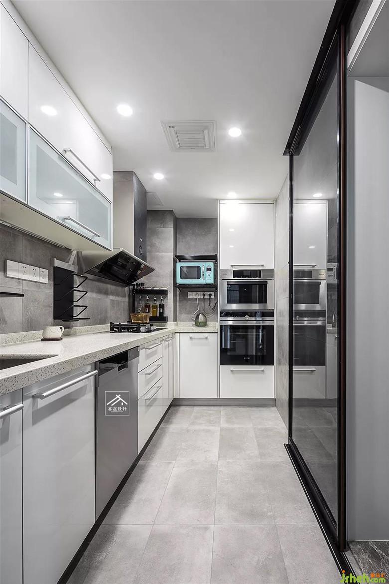 地面用了全部爵士白哑光砖,增加餐厅和客厅的采光。