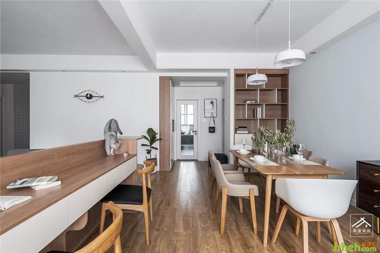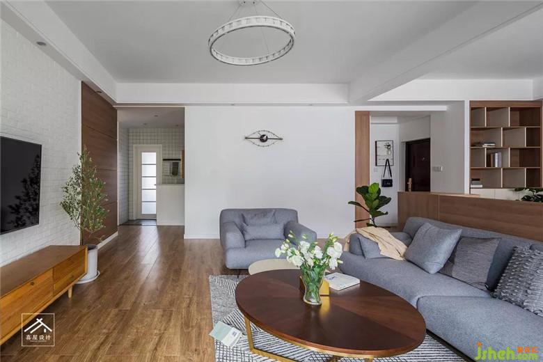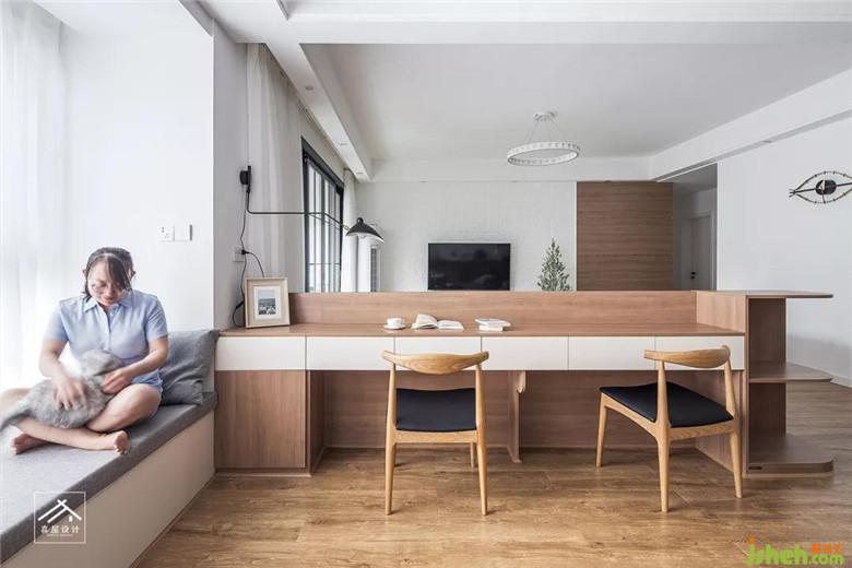 横厅过长,刚好把吧台的位置放在了沙发后面,间隔了空间调性,又是沙发背靠柜。
