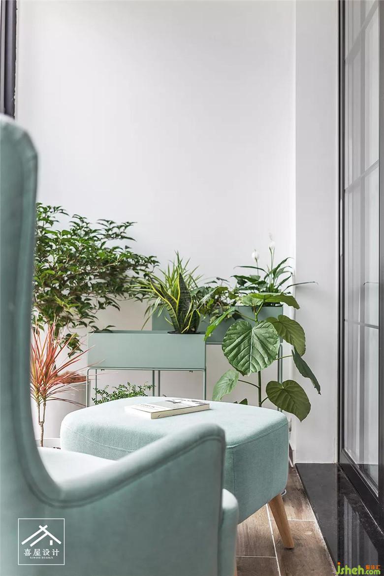 客厅外的阳台可以养猫,种植物,听秋风,喝一点川红暖胃。