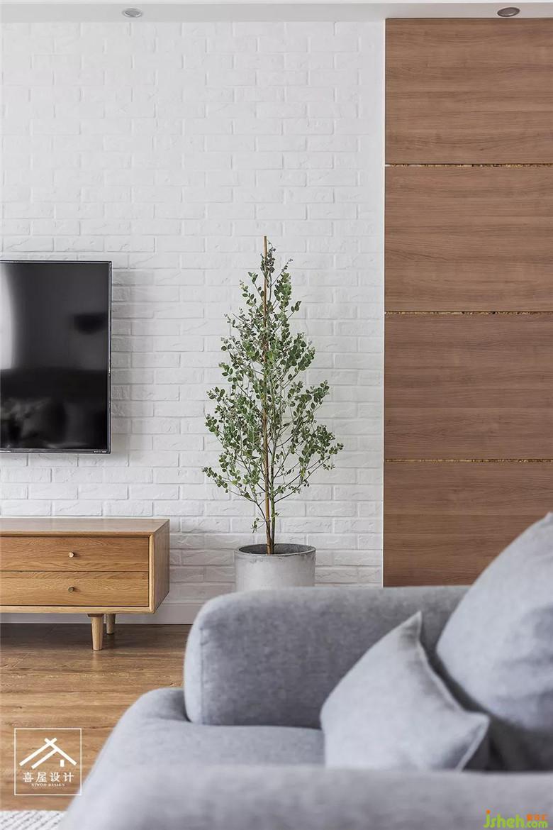 电视墙做了文化石,白与浮雕般的格纹感素雅了整个空间的调性。