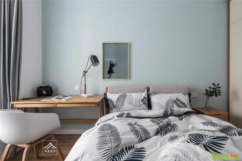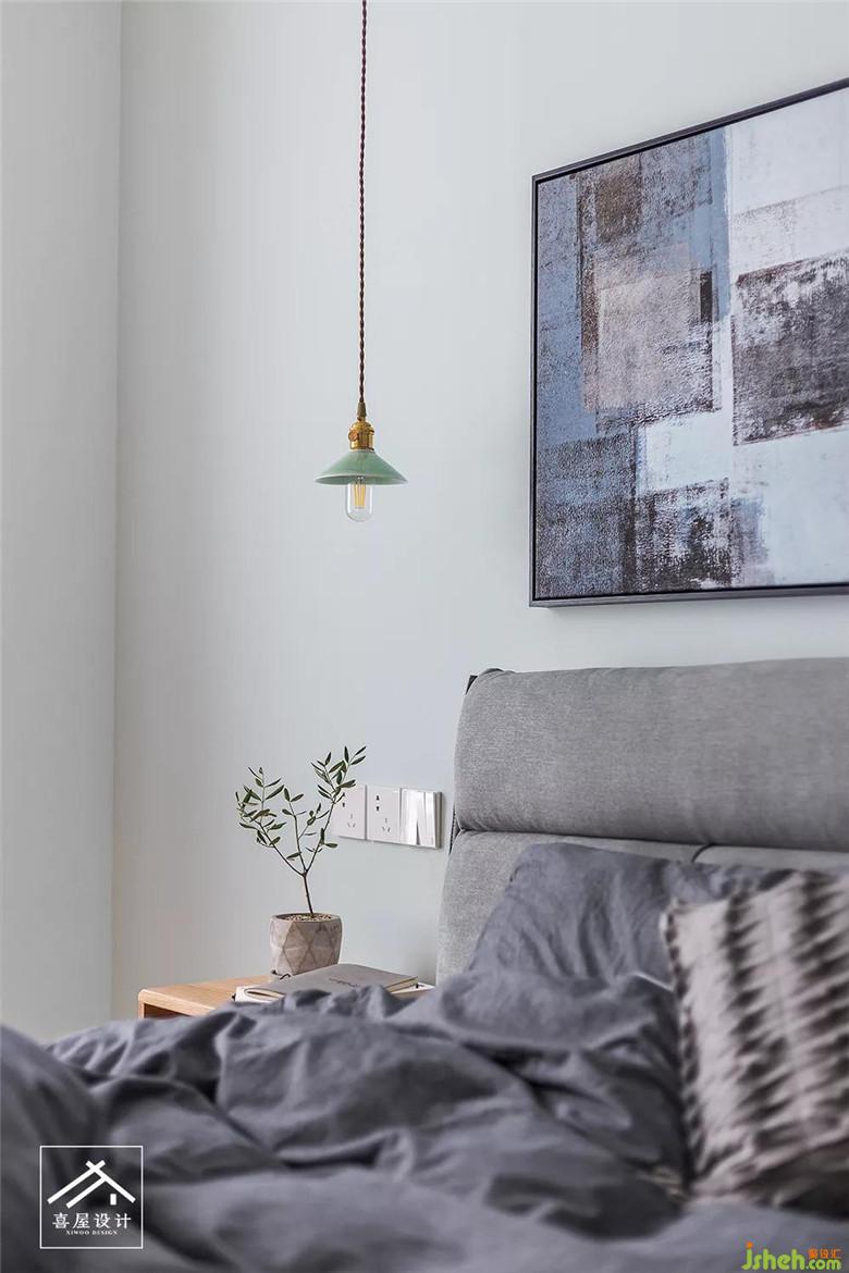 主卧室床头两个小吊灯,给予了空间的纵深感,又方便晚上看书使用。