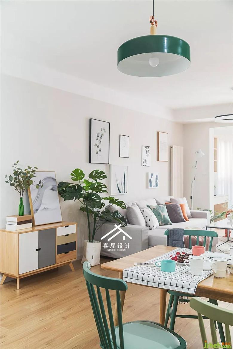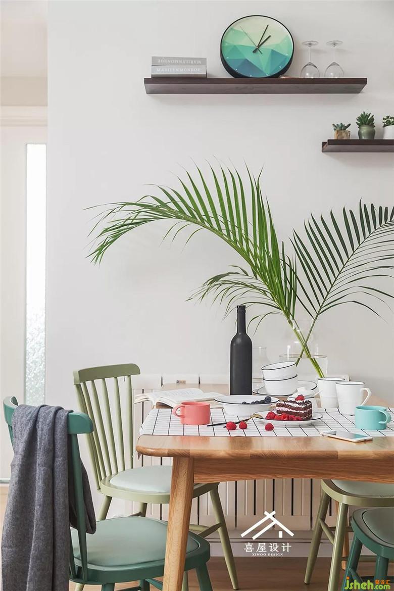 餐桌上的隔板可以摆放一些小物件,也让简洁的空间有了层次感。