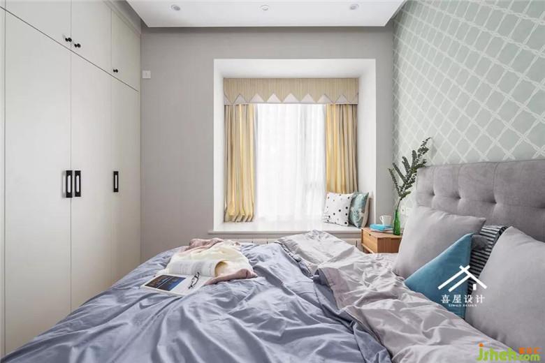 主卧室长度3.36米,床2米,还剩下1.3米,衣柜0.6米,刚好剩下一个能够开门和过人的空间,虽然有点局促,但也还算能安下一个衣柜,室内设计师保证了储物空间。
