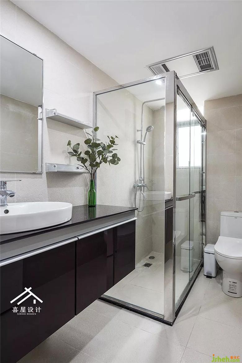3.7平米的卫生间,刚好能放下淋浴房和一个0.9米的洗面盆,恰到好处。