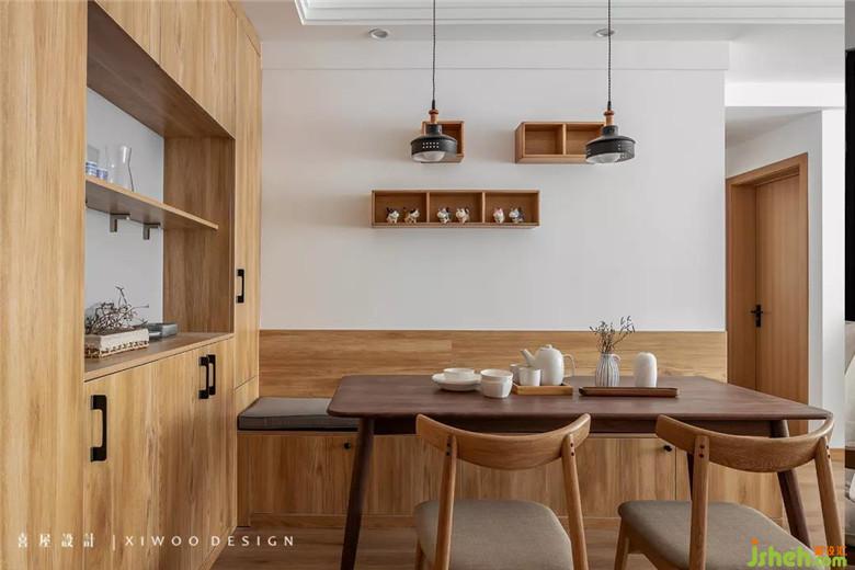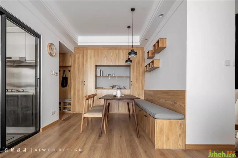 在特定的空间下要维持功能布局的不变,于是墙体的边与角都被设计师赋能。从门厅的鞋柜到餐边柜转至餐厅卡座储物柜,这是之于精细尺寸基础上巧妙运用。无论是使用的便利性上还是空间美感上都是极好的。