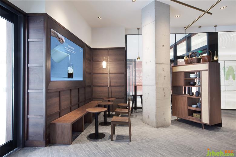 在空间布局上,敞开式的厨房在墙面采用了蓝紫色的小砖,大大小小的深棕木色档口,能够360度看到厨房的工作人员制作手工饮品的过程,让食客时刻感受着品牌的匠心。