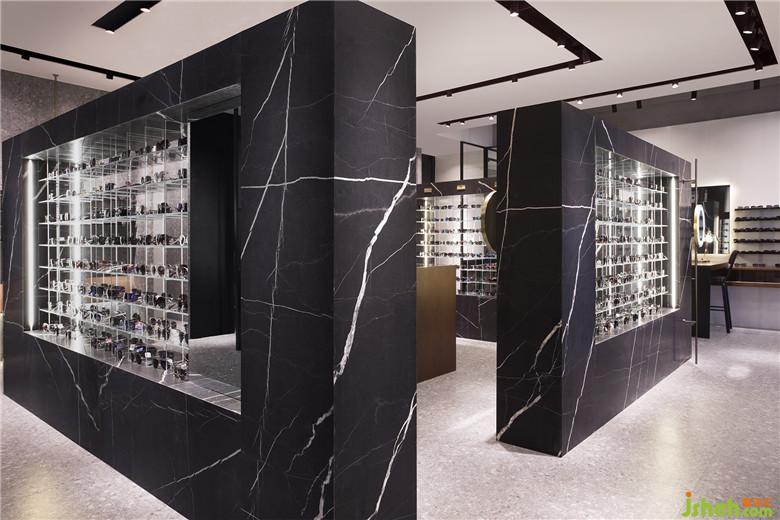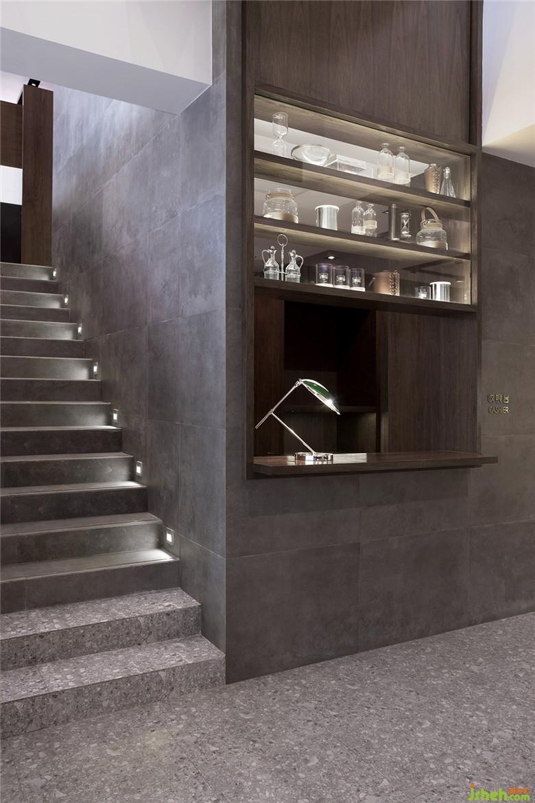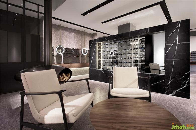 此建筑年代已久,室内设计师为了保持原有的建筑感,特地大面积用具有时代感的水磨石地砖缀以温润的胡桃木和现代时尚的深色天然大理石。同时在墙面采用大面积留白的手法搭配着少许的深色大理石,显得整个空间放眼望去干净、明亮、整洁。主打高品质极简风格,迎合现代年轻消费群体。