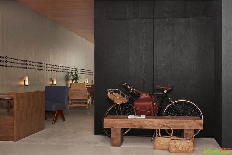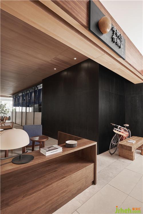餐厅装修在空间布局上,敞开式的厨房在墙面采用了黑色木纹,精致的装饰金属管,能够360度看到厨房的工作人员制作手工饮品的过程,让食客时刻感受着品牌的匠心。