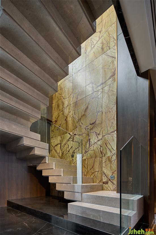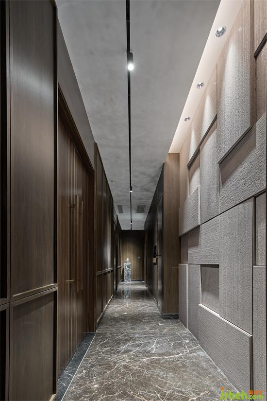 层层叠叠的楼梯踏步,犹如石块堆叠的小山,引领着通往2层。2层整体私人会所设计娱乐性较强,设置接待用餐的大包间,藏酒阁,棋牌室,禅修室,茶室,KTV室等功能一应俱全。
