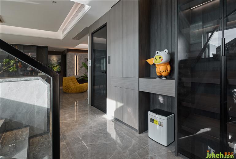 二楼是主人家一家四口的私人空间,有平时男主人打游戏及孩子们玩耍的书房兼休息室,家居设计平时孩子们都会在这个空间里读书,玩耍。男主人偶尔居家办公,带上孩子们一起打电动等。