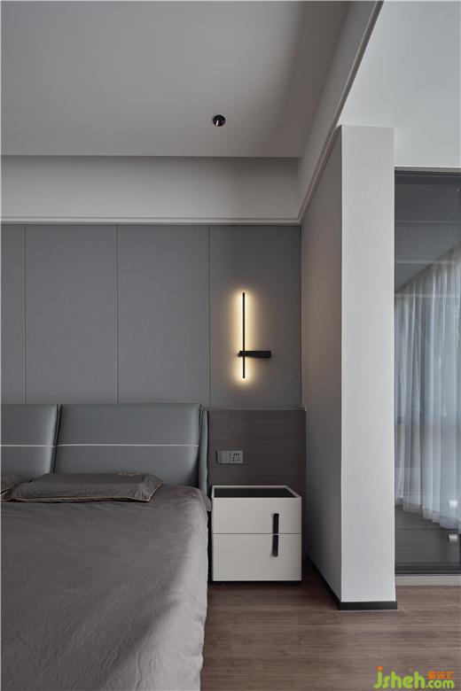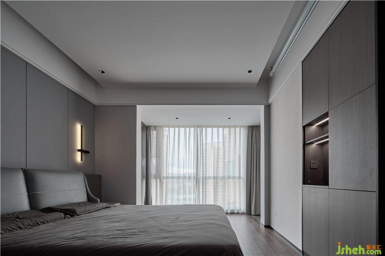 主人房经过改造衣帽间跟洗手间单独分开,家居设计即增加了衣帽间的容量,又解决了衣帽间进洗手间引起的潮湿问题,一举两得。阳台封起来作为了房间的一部分,使得主人房更加宽敞舒适。取消了传统的挂壁电视,改成可移动的投影。