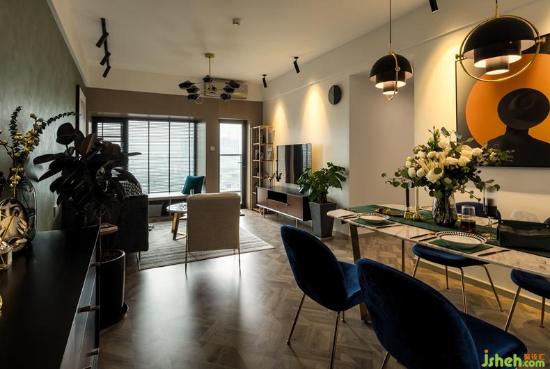 在摩登风情里必不可少的一定是金色、千鸟格元素。深圳设计公司