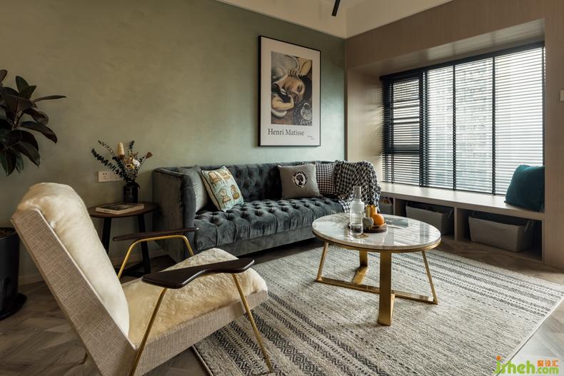 原户型的客厅靠近阳台位置是一面落地窗,设计师将这面落地窗改造成一个自带收纳功能的飘窗台,担任起收纳玩具功能的飘窗台也可以作为一个沙发来使用。隆重的古典沙发固然奢华,但考虑到整个客厅的比例而选用融合了古典拉扣设计的轻奢风小沙发。深圳设计公司