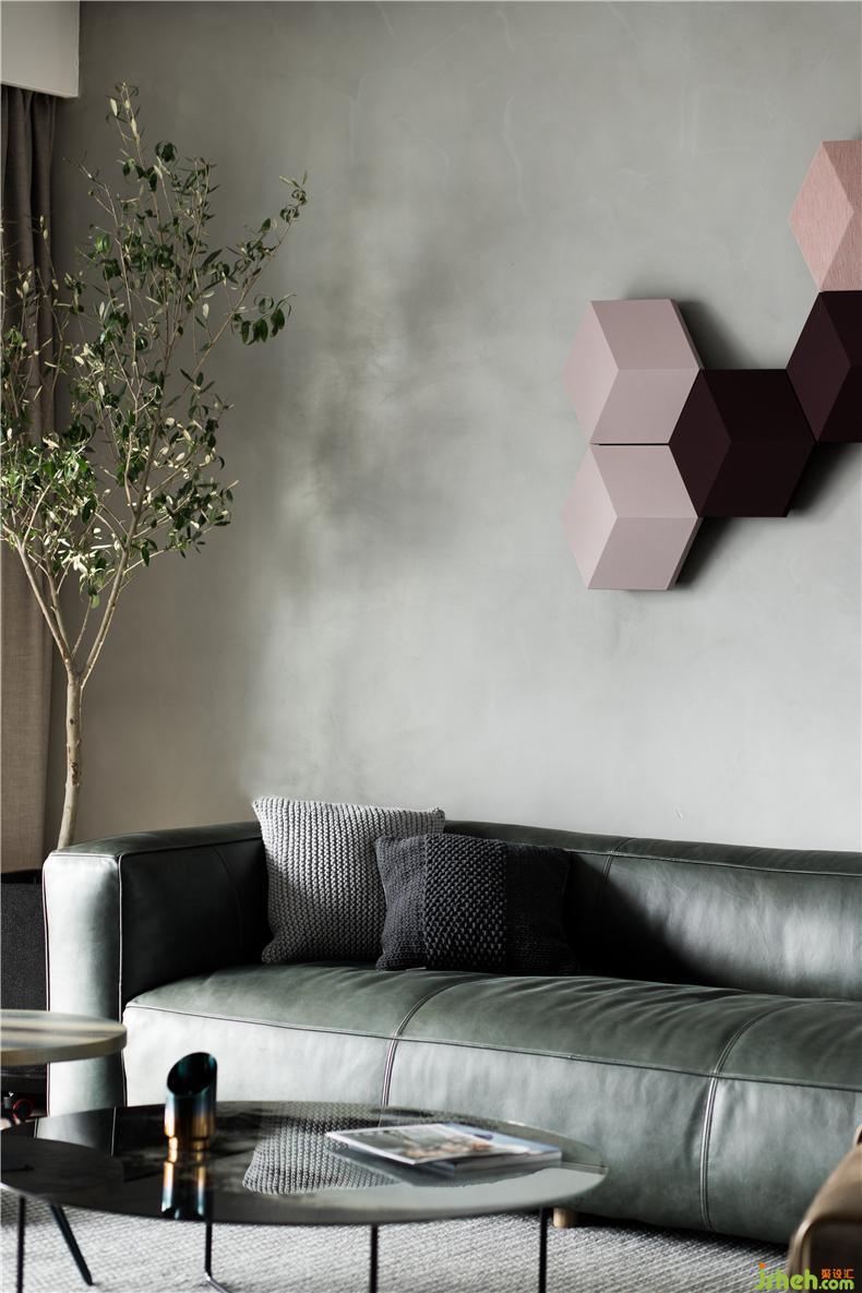 屋主对设计的偏好很明确,喜欢低饱和度的色调,室内设计师有助于让内心重新恢复平静,也让整个家的风格看起来更加简洁高级,所以墙面采用的是水泥灰色磐多魔工艺,鱼骨拼接地板选择灰调低彩度的色塊,这些元素架构出层叠的空间视觉,室内设计师其特有的质感呈现着不完美的完美。