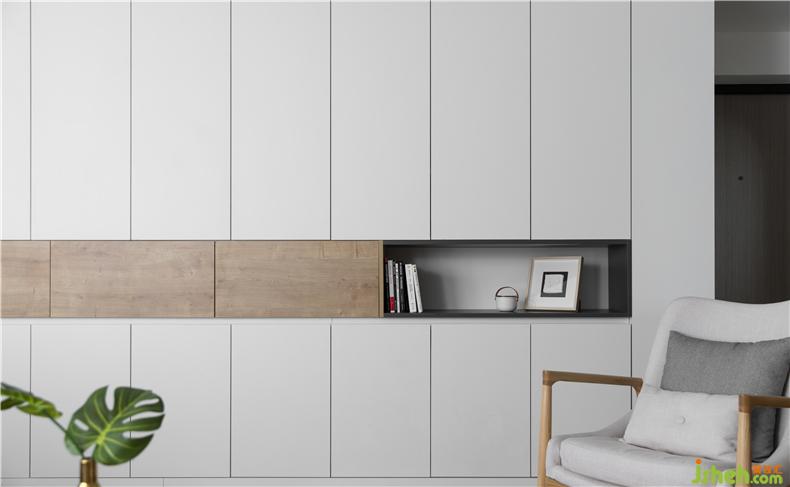 屋主是一位气质的知性优雅单身女性,由于平时不需要那么多房间使用,室内设计师所以三房改两房让空间扩容,为此还多了一个宽大的衣帽间。整个空间设计了很多的储物柜来收纳小主很多的物品。整体都是以简约线条干净利落的形式布满整个空间去体现女主内心中的静谧生活。