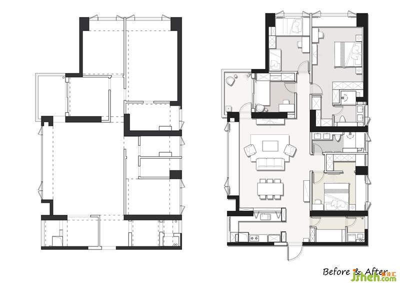 改掉主卧与主卫呆板的动线,融入了转角衣帽间,让动线更为流畅
