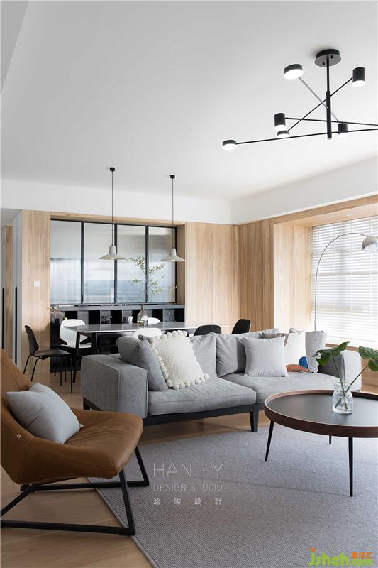 这次的房屋面积很大,没有封阳台处理,留给下午喜欢喝茶在那个角落看风景的人。厨房到餐厅到客厅的既视感是一览无遗,变动了一部分墙体位置,合理贯通动线与空间的布置关系。