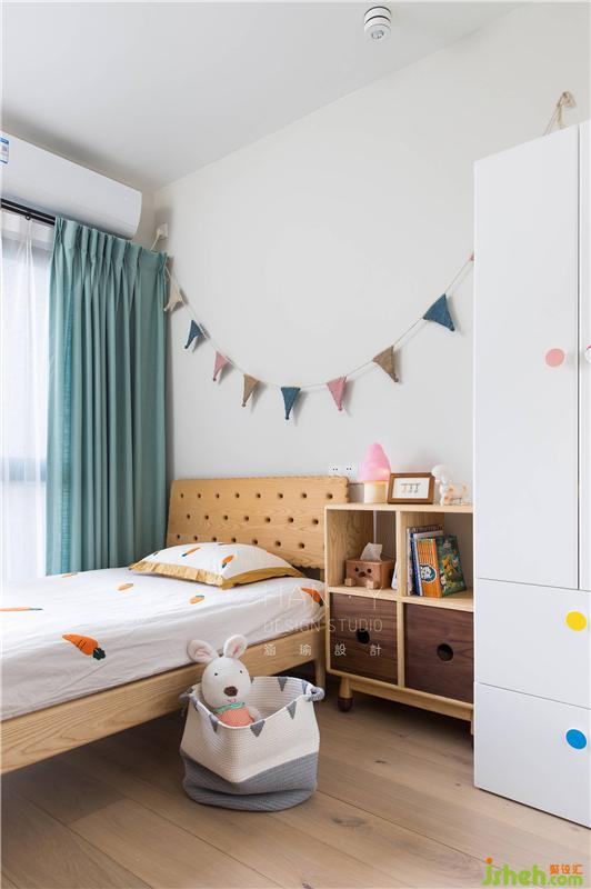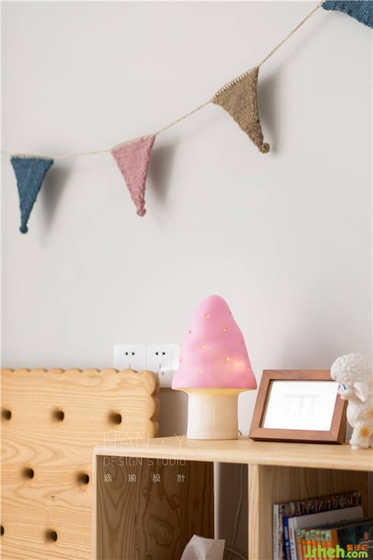 为了女儿的安全性考虑,家具用的是可爱的造型兼圆滑的材质。在这个空间里,软装都是比较灵活的,没有做整体的柜体硬装,也是为了方便女儿长大后更换风格。