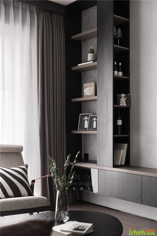 简洁干净的空间,用了只有1.5公分高的黑色暗装地脚线,深圳装修设计希望弱化地脚线的存在。打扫卫生时也不担心会弄脏墙面,但同时提升了空间结构层次,又不会显得繁琐。
