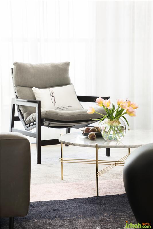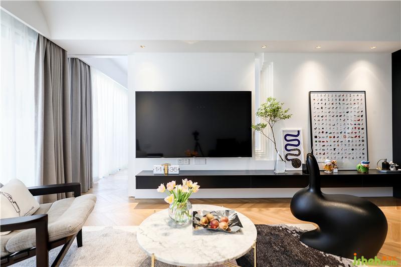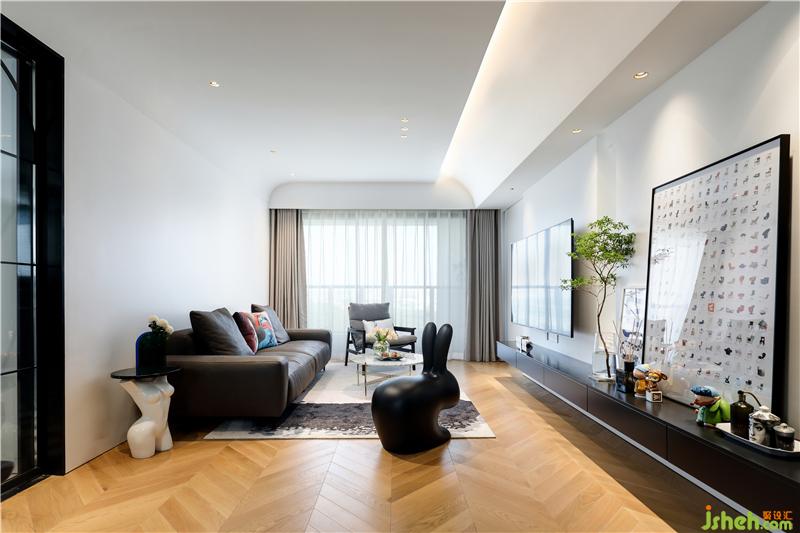 暖色与黑色的结合,高级的原木色人字拼木地板,营造温暖阳光的轻盈复古感。皮质沙发与复古艺术边几裹挟着岁月的韵味,体现主人不拘的个性气质。