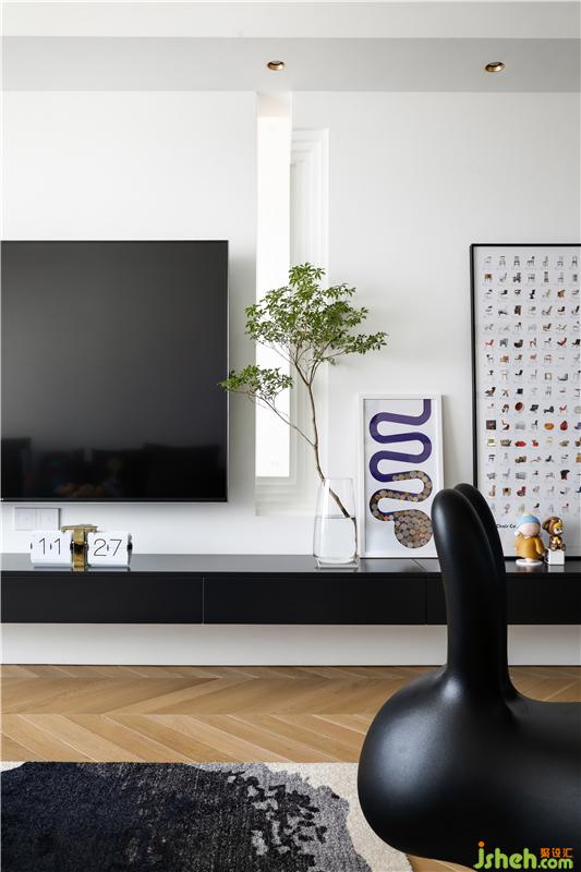 随处出没的黑色小兔为空间注入个性趣味。创意装饰画内封存的是夫妻两周游世界的各国纪念钱币,诉说着一段段奇妙的异国游记。
