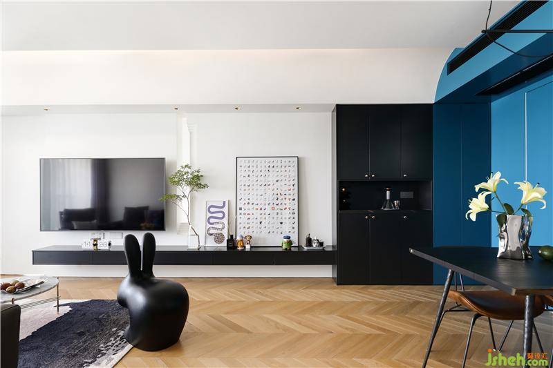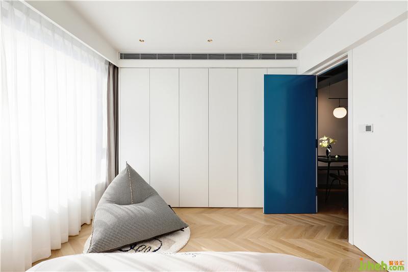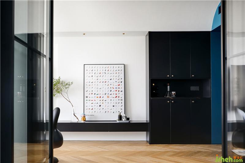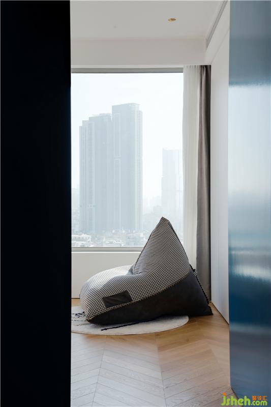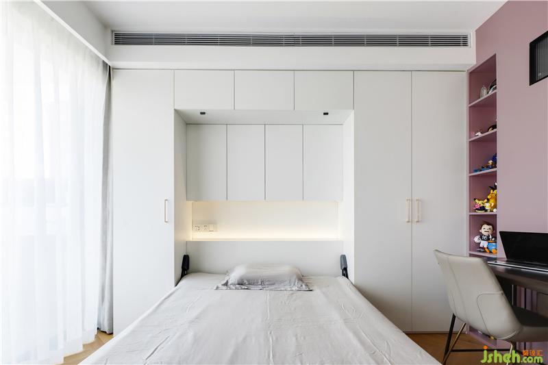 设置了一个隐藏式上翻床,用于接待客人或工作间隔休憩,造型简约的工作台和书柜,赋予这个空间更多的可能性。