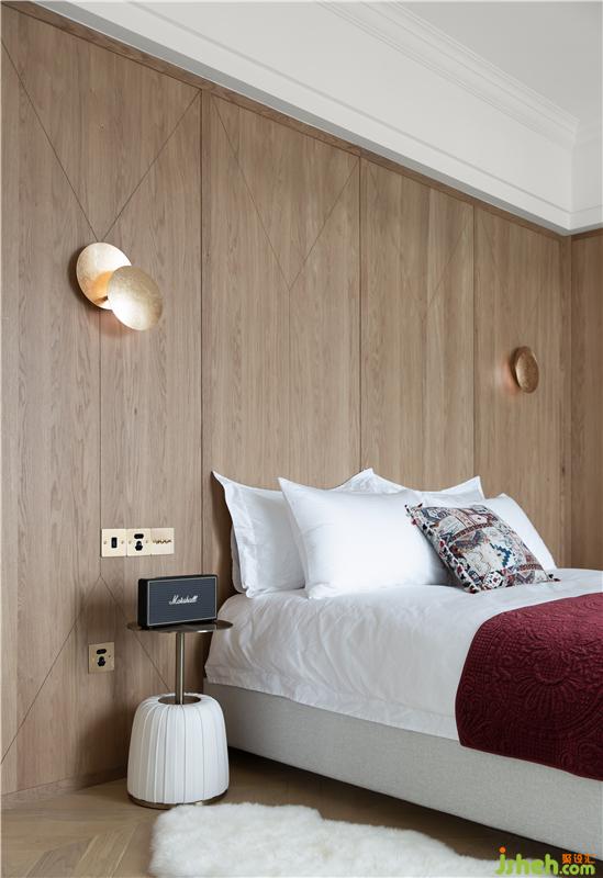 木饰墙面上精细优雅的金色元素灯饰,隐秘感中包含轻奢,精致细腻的质感开启对美的感知。