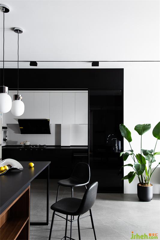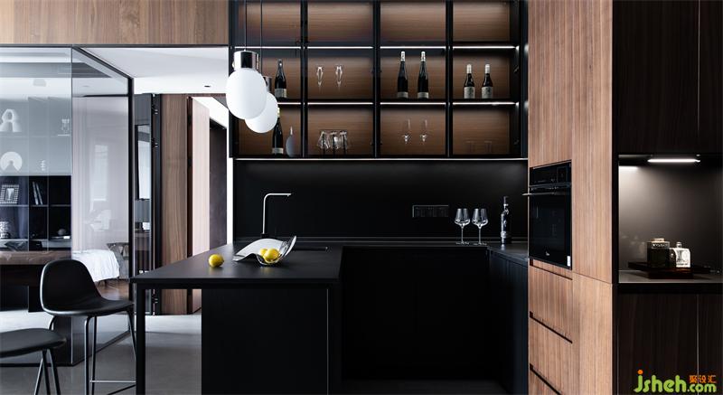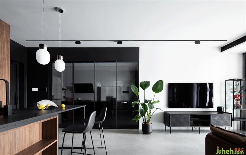 推开黑色玻璃推移门后,也足够藏下人间烟火气。棱角块面分明的简洁,半开放式的设计在考量互动体验之余,也让空间尽显纯粹、干练。